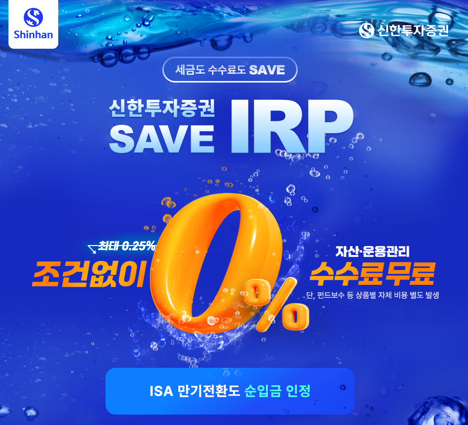 내가 가입한 상품은 바로 "신한투자증권의 IRP" 이다. 조건 없이 수수료 무료라는 이벤트가 선택에 영향을 주었다.